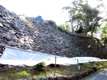本丸を降りたところの石垣。 昨今は 映画のセット等々にも。 下の苔の養生中です。 そっとしてあげてくださいね 石垣に触れたい方には 南城館の展望の下にも。 |