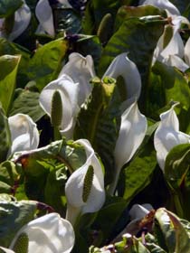 カタクリを見られる時期、 のぼり口の傍らには ミズバショウも植えられていました |